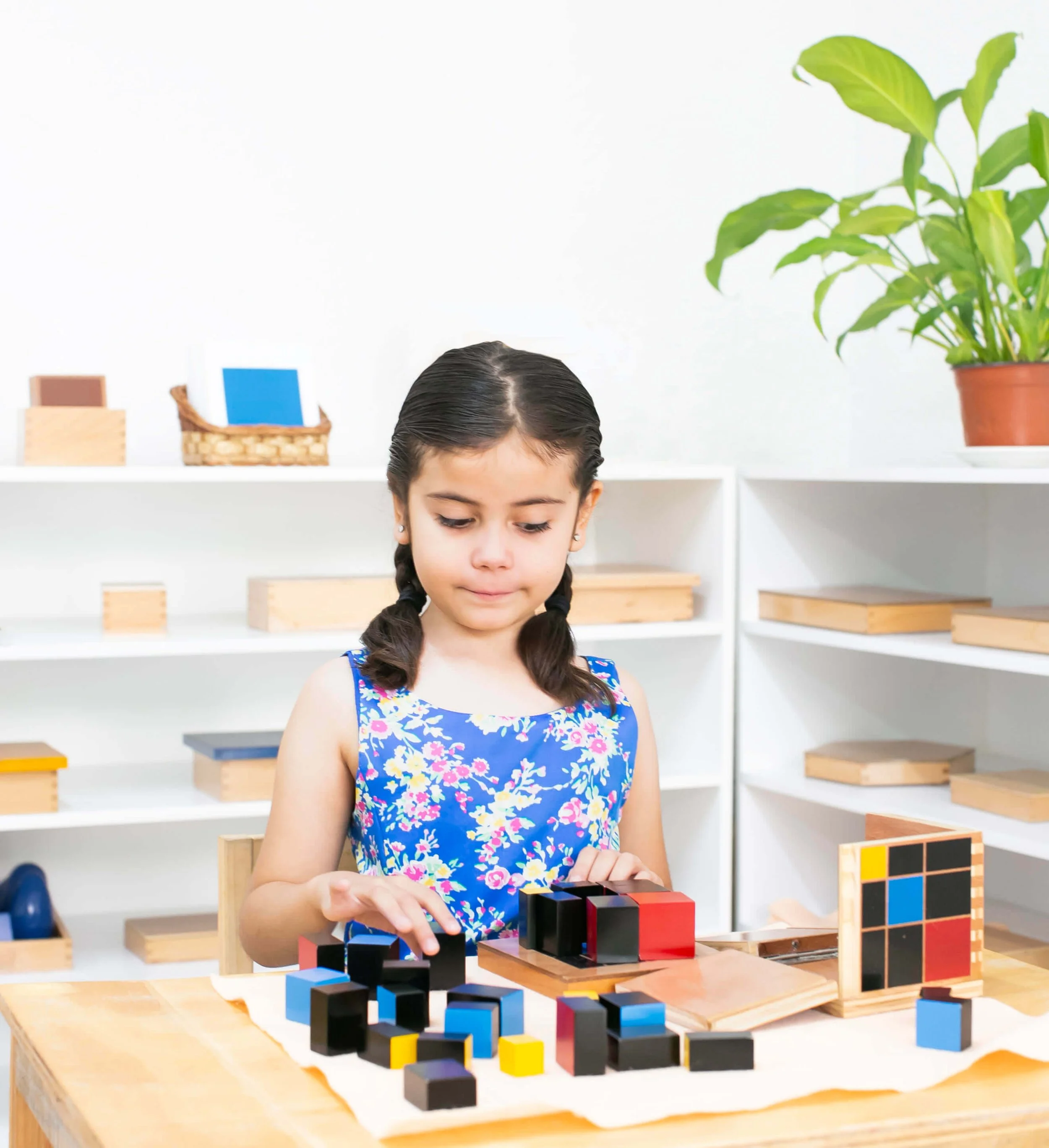 Ofrece a los niños un entorno seguro y acogedor, rico en actividades propias para su desarrollo con materiales cuidadosamente diseñados y organizados en una secuencia de simple a compleja para los pequeños.